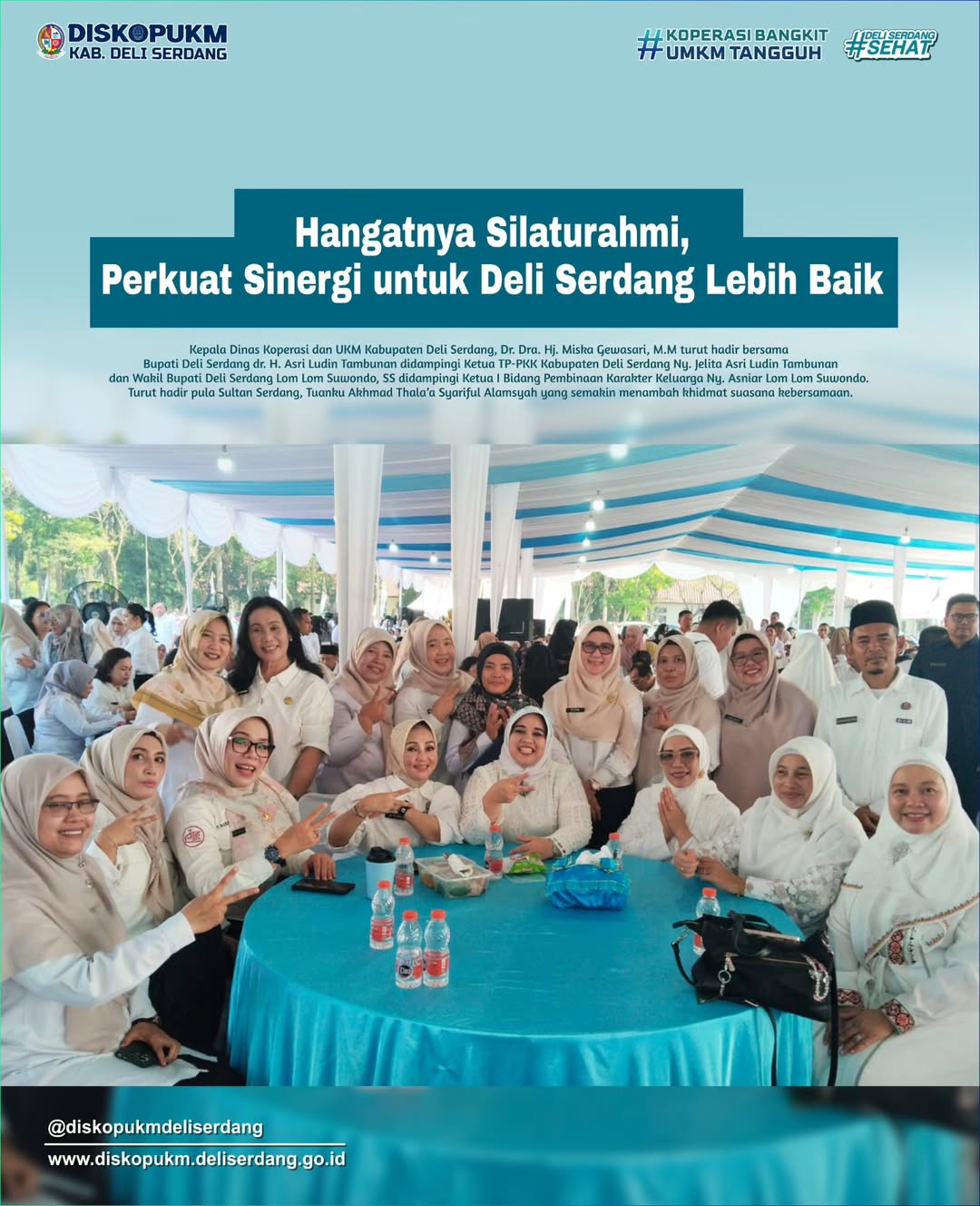 Kepala Dinas Koperasi dan UKM Kabupaten Deli Serdang, Dr. Dra. Hj. Miska Gewasari, M.M turut hadir bersama Bupati Deli Serdang dr. H. Asri Ludin Tambunan didampingi Ketua TP-PKK Kabupaten Deli Serdang Ny. Jelita Asri Ludin Tambunan dan Wakil Bupati Deli Serdang Lom Lom Suwondo, SS didampingi Ketua I Bidang Pembinaan Karakter Keluarga Ny. Asniar Lom Lom Suwondo. Turut hadir pula Sultan Serdang, Tuanku Akhmad Thala’a Syariful Alamsyah yang semakin menambah khidmat suasana kebersamaan.