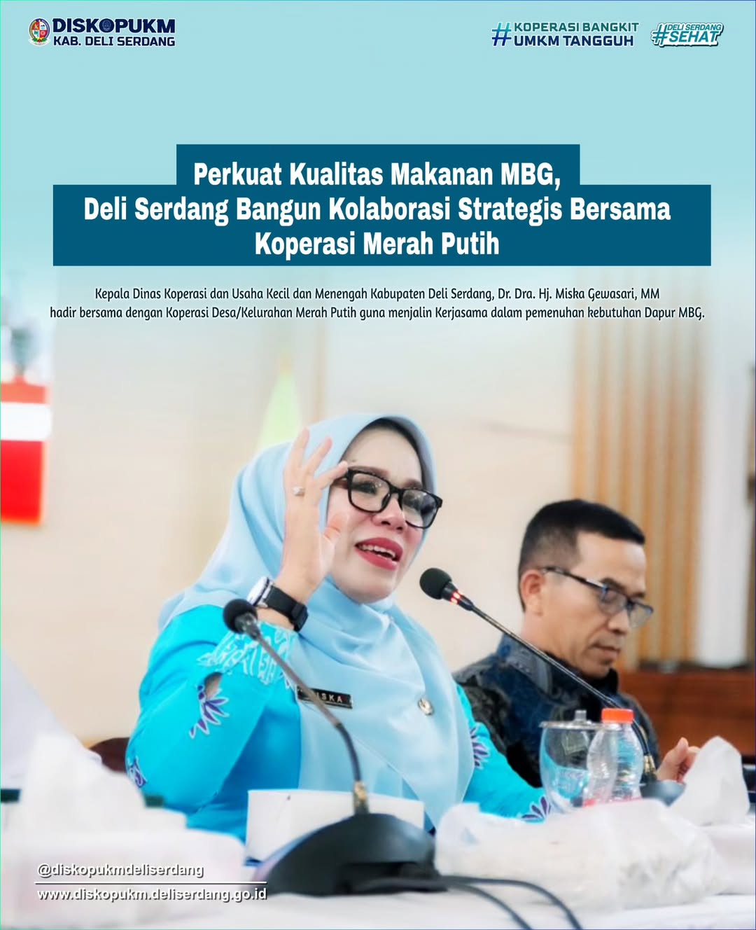 Dalam agenda pertemuan tersebut, Kepala Dinas Koperasi dan Usaha Kecil dan Menengah Kabupaten Deli Serdang, Dr. Dra. Hj. Miska Gewasari, MM hadir bersama dengan Koperasi Desa/Kelurahan Merah Putih guna menjalin Kerjasama dalam pemenuhan kebutuhan Dapur MBG.