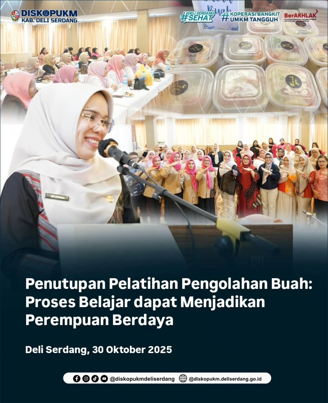 Kadis Koperasi dan UKM Kabupaten Deli Serdang Adela Sari Lubis, M.KM menutup Pelatihan Manajemen SDM