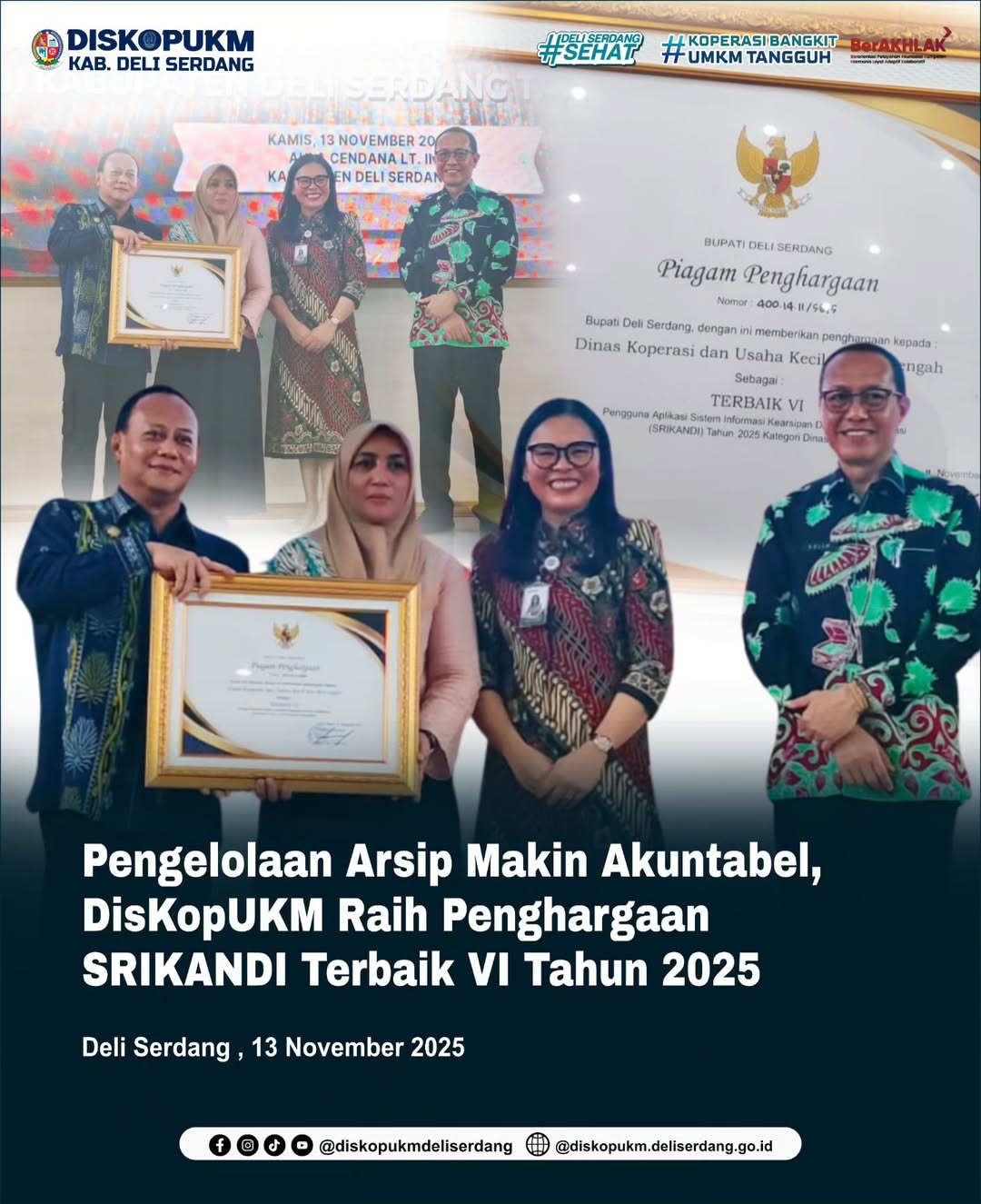 Pengelolaan Arsip Makin Akuntabel, DisKopUKM Raih Penghargaan SRIKANDI Terbaik VI Tahun 2025 Kadi