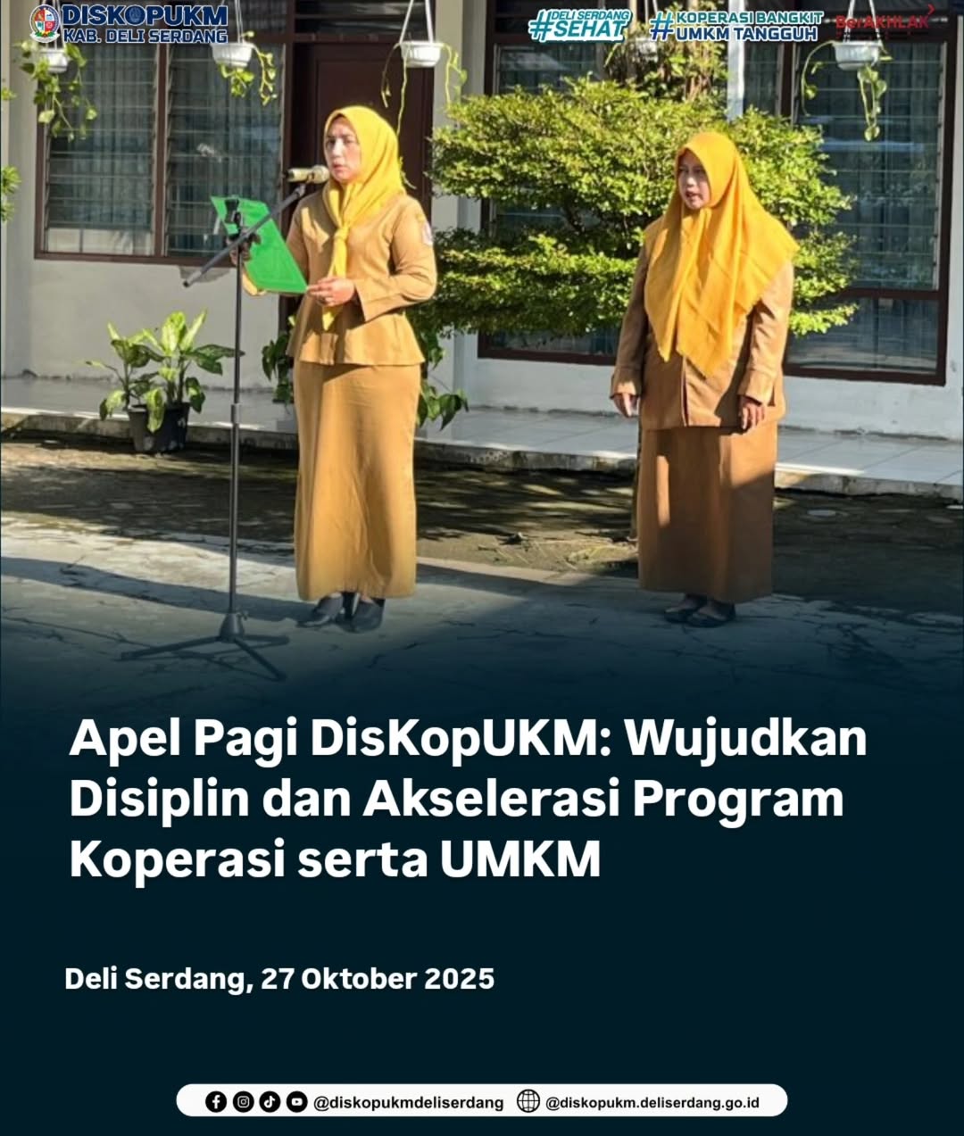 Kepala Dinas Koperasi dan UKM Kabupaten Deli Serdang Dr. Drs. Hj. Miska Gewasari, M.M memimpin apel